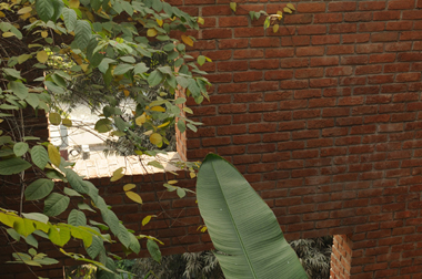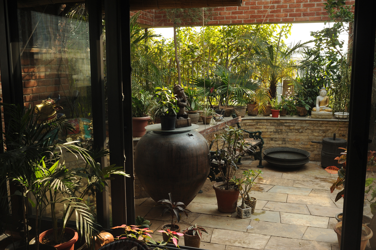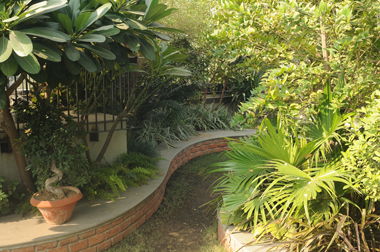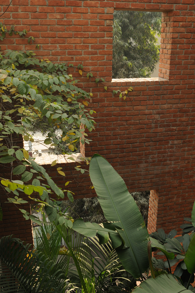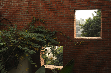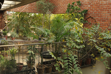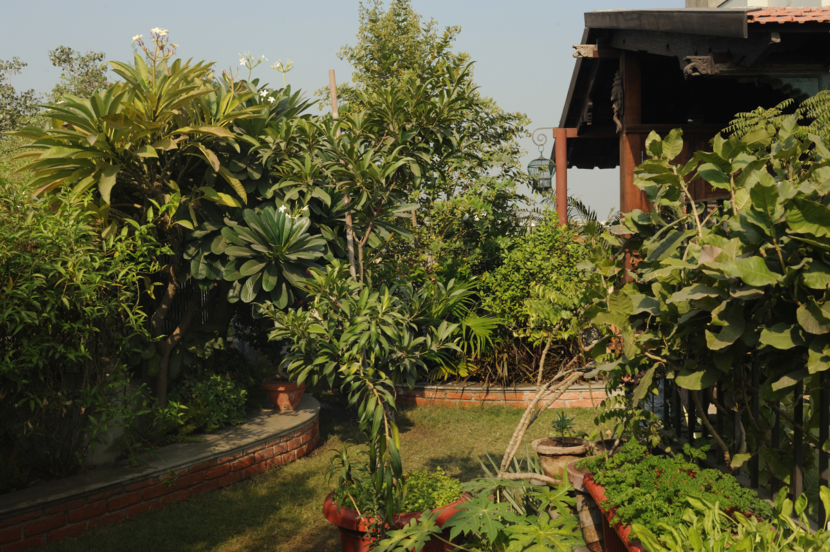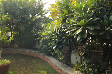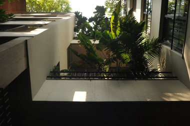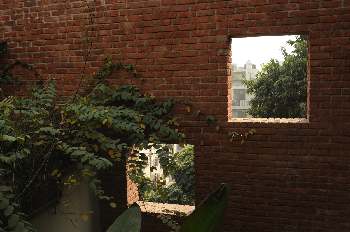 Set in a busy residential neighbourhood of Delhi, the house designed by Studio Lotus, looks inward for inspiration. The design intent of this multilevel garden is to create a forest in the middle of crowded city. With a love nature and plants, the client sought a design that has trees popping out of the building. Large planters were created on different levels to support trees and shrubs. An informal, curvy geometry is used to convey the fluidity of nature. On the rooftop, lawn and lush tropical plantings, and a historical Kerala verandah are used to transport the user to a different reality. Strategically placed planters screen off the ugliness of the surrounding broken roofs, plastic water tanks and cell towers.
