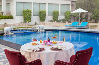 The landscape of this premium hotel had immense potential for upgradation. The older pool and garden, built in the 1970s looked dated and lacked a coherent vision. ROHA redesigned the pool and surrounding garden to be more usable and visually stunning. With reference to the local historic context the landscape was reimagined using paving patterns and motifs that recall the garden at Taj Mahal. Several subspaces were carved out for large banquets, pool parties, children’s play areas and dining terraces.