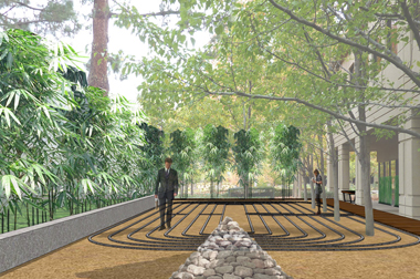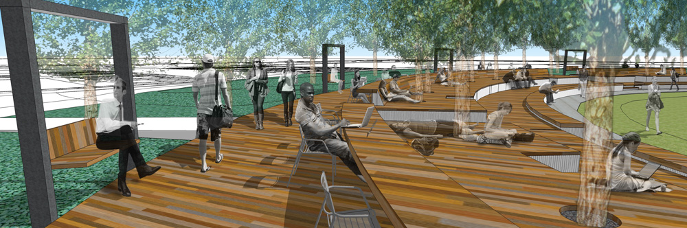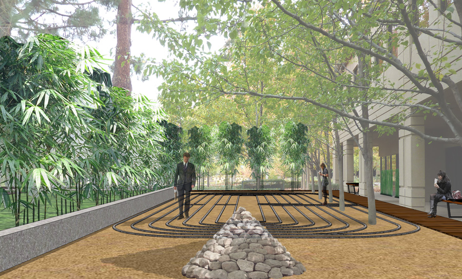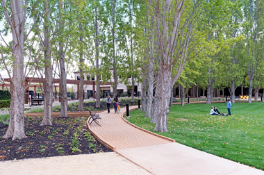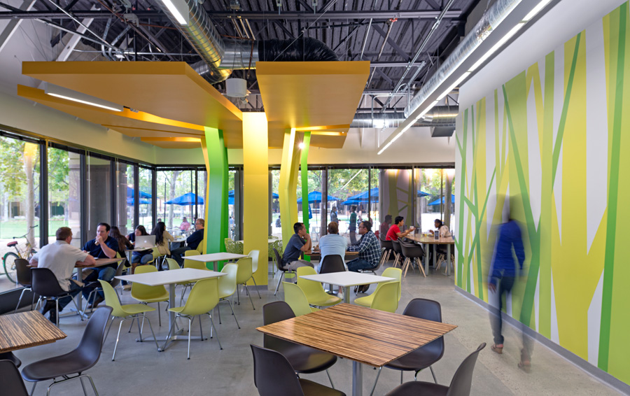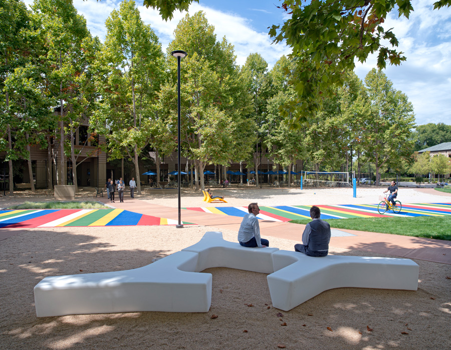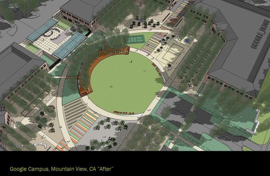 Set within a landscape of existing mature trees, new amenities support Google’s employee culture, providing active and engaging spaces for outdoor working, socializing, fitness, dining, and special events. The design also supports the client’s goals as a leader in sustainability – providing photovoltaic-shaded electric vehicle priority parking, bicycle access and parking improvements, and renovated irrigation systems to minimize water use.